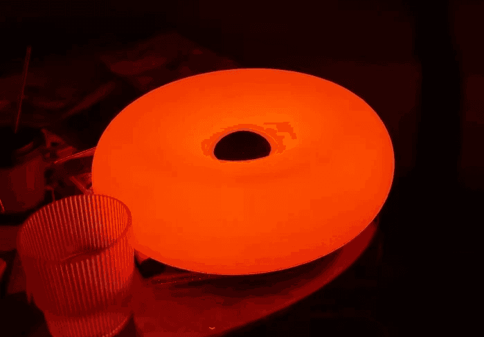 Sculptural donut-shaped ambient lamp with touch dimming. Orange 3-colour or White RGB with remote. USB-powered contemporary lighting for modern spaces. UK delivery available.