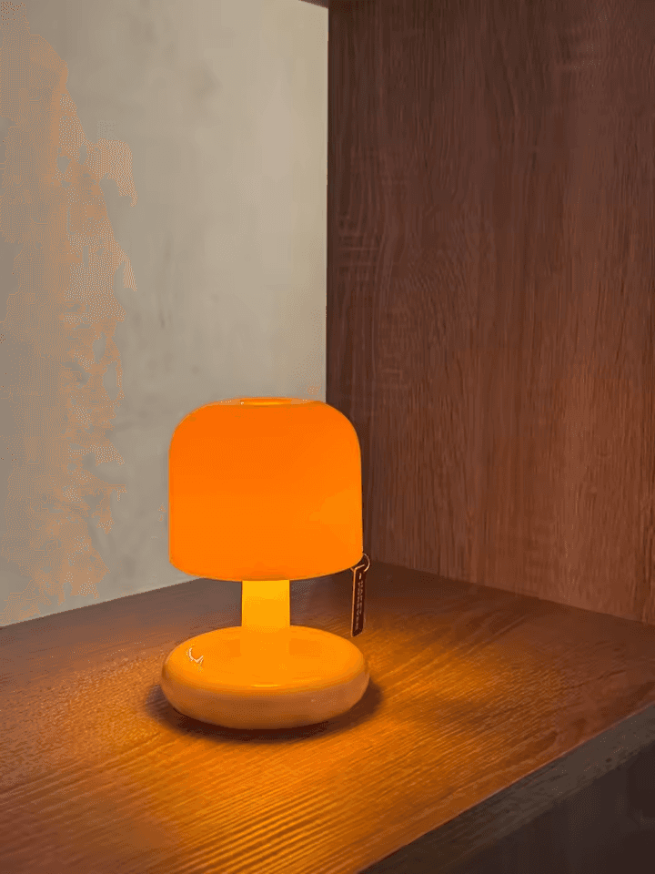 This delightful piece celebrates the sculptural beauty of organic forms through its generous dome shade and cylindrical stem, creating an instantly recognizable profile that feels both nostalgic and contemporary. The soft, luminous finish diffuses light beautifully, wrapping your space in gentle warmth perfect for bedtime routines, reading, or creating intimate ambiance. The compact scale and cordless design make it endlessly versatile—move it freely from nightstand to desk to shelf as your needs evolve.