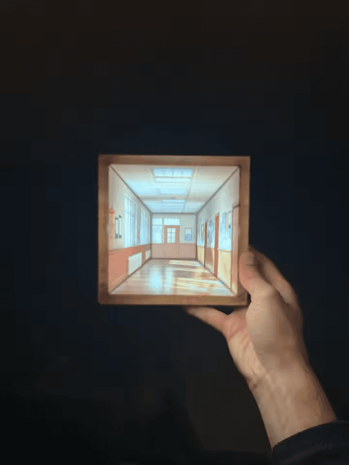 A mesmerizing optical illusion lamp that transforms a flat surface into an infinite gallery corridor through ingenious 3D perspective artistry.